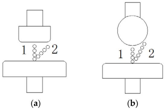 The bubbles of the cylinder-plan and sphere-plan electrodes, where 1 is the initial bubbles; 2 shows the bubbles affected by the corona; (a) the bubbles of the cylinder-plan electrodes; and, (b) the bubbles of the sphere-plan electrodes.
