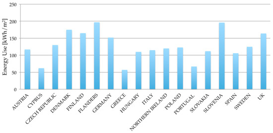 Energy uses of school buildings in European countries (varying from about 52 to 197 kWh/m2 year) (elaboration of the authors from [8]).