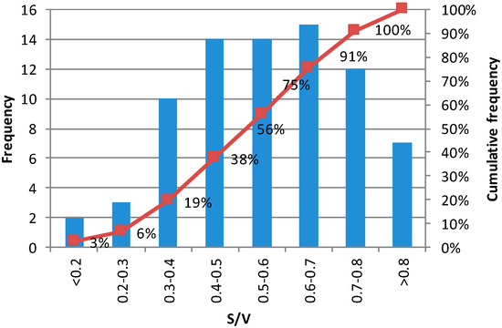 Figure 5 shows the distribution of schools as a function of the ratio between the external surface and the gross heated volume (called S/V ratio). Only 6.5% of the sample is composed of very compact buildings with an S/V value lower than 0.3. A significant percentage of the studied buildings (44.2%) has a S/V ratio higher than 0.6 and this confirms the high presence of small single-floor buildings in the sample.
