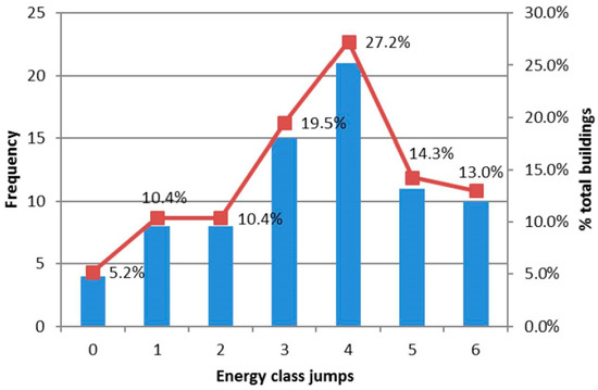 Frequency distribution of jumps in energy classes according to the energy retrofit projects.