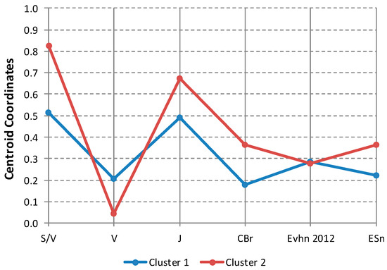 Once the centroids were identified, the mean characteristics of the elements belonging to each cluster can be described with the centroids’ coordinates (see Table 3).