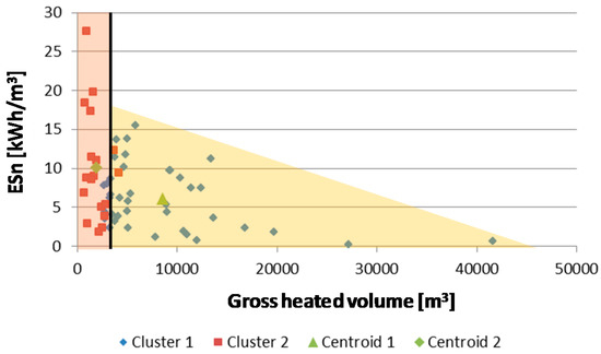 The parameters considered for the cluster analysis are all the ones that were available and able to represent the energy and constructive features of the schools. Furthermore, these parameters are the most common and strongest indicators of energy use and cost-benefit in buildings. Different literature studies considered them in order to estimate energy consumption and to run a cluster analysis [9,36,37]. Such parameters, used to perform and validate the clustering, were obtained from the executive projects of the retrofits, and correlated with the cost-benefits ratio. They are: