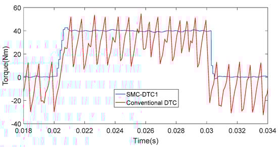 Torque response of sliding-mode-control (SMC)-DTC and conventional DTC.