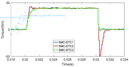 The simulation results of asymmetric boundary layer SMC-DTC and symmetric boundary layer SMC-DTC are presented in Figure 9. SMC-DTC1 is the result of asymmetric boundary layer one. SMC-DTC2 and SMC-DTC3 are the results of symmetric boundary layer SMC-DTC, . SMC-DTC2 is the result of narrow symmetric boundary layer one. It has a good performance on the rising edge, but there is a severe overshoot in the falling edge. SMC-DTC3 is the result of wide symmetric boundary layer one. It has a good performance on the falling edge, but the rising time is longer. Because of , the asymmetric boundary layer SMC-DTC has a good performance on both the rising edge and the falling edge.