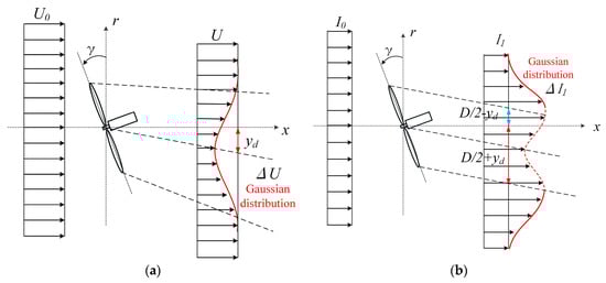 Schematic of the Gaussian-based wake model in yawed condition: (a) mean velocity (b) turbulence intensity.