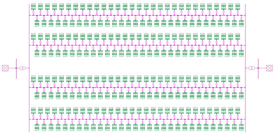 For the evaluation of the impact of the control logics on the distribution grid, a computer simulation was performed on a test network implemented in a NEPLAN v. 553 [15] environment, the topology of which is shown in Figure 2.
