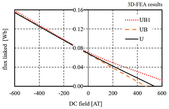 Table 1 shows 3D-FEA results at no-load phase magnetic flux linkage Ψs for the UB1, UB, and U concepts. Moreover, the presented results demonstrate a range of field weakening of the machine as ratio Ψs_0/Ψs_2A and a full field control range as ratio Ψs_−2A/Ψs_2A.