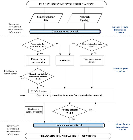 The suggested algorithm that is described in this paper completely relies on synchronized phasor data stream from PMU devices and extends the research done in [12]. Modern PMU devices [13] and phasor data concentrators (PDC) normally operate with sampling time equal to one electricity sine period (20 milliseconds), which can enable all actions of the advanced protection algorithms, both in detection and operation phases, to be completed fortifying the transition towards smart transmission grid concepts [14,15].