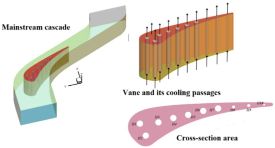 - Wang, Z.F.; Yan, P.G.; Huang, H.Y.; Han, W.J. Conjugate heat transfer analysis of a high pressure air-cooled gas turbine vane. In Proceedings of the ASME Turbo Expo 2010, Glasgow, UK, 14–18 June 2010. [Google Scholar]