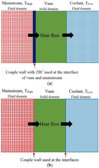 - Bohn, D.E.; Becker, V.J. A conjugate 3-D flow and heat transfer analysis of a thermal barrier cooled turbine guide vane. In Proceedings of the ASME the International Gas Turbine & Aeroengine Congress & Exhibition, Stockholm, Sweden, 2–5 June 1998. ASME paper 98-GT-89. [Google Scholar]