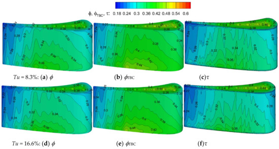 - At midspan, for both Tus, TBC is effective in protecting the metal surface, but TBC does not play a major role near the TE. The contours indicate that at each Tu, the inclusion of TBC leads to the quantitative increment of overall cooling effectiveness of about 16–20%, but about 8% at the TE.