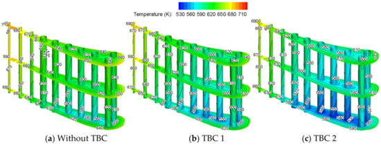 - The use of two different TBCs indicates that the vane with the lower thermal conductivity provides the lower internal and average temperatures, but its role reduces more significantly in the TE.