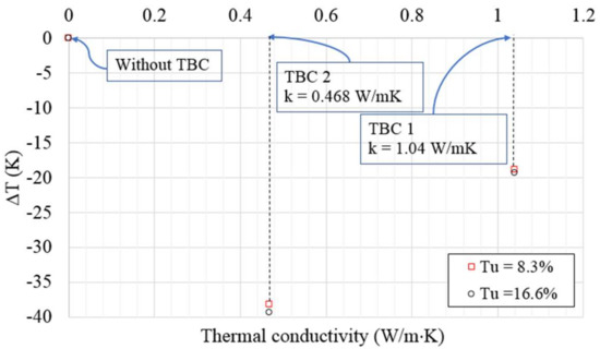 - For both TBCs, the difference of the average temperature of the vane changes insignificantly as Tu increases.