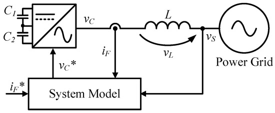 The electrical model of this type of system, generally can be described by the source voltage (vS), by the converter output voltage (vC), and by the coupling passive filters voltage (vL), where, in this specific case, an inductor is used as a passive filter. Therefore, by analyzing the voltages in the AC side of the system, it is possible to establish the output voltage of the 5-level converter as a function of the source voltage and the voltage across the inductor, as described by: