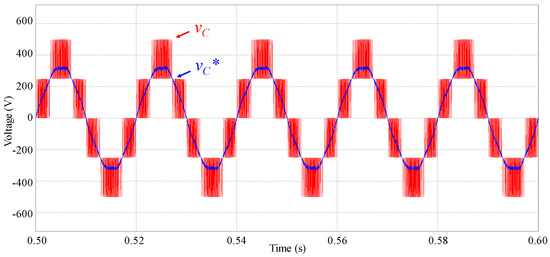 In order to assess the generation of the desired voltage levels based on the adapted SPWM strategy, Figure 8 depicts the output voltage produced by the 5-level converter (vc) and its reference (vc*). As it can be perceived, the converter is capable of producing the distinct 5 voltage levels according to the reference voltage established by the predictive current controller.