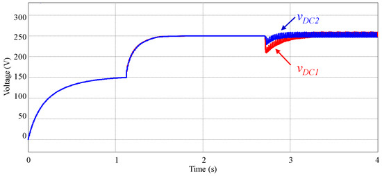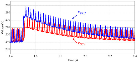 Experimental validation of the DC-link voltages (vDC1 and vDC2) control algorithm.