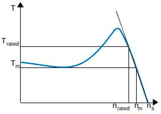 where Tm is the current operation torque, ns is the synchronous speed, nm is the current operation speed, and nrated is the rated speed. An observation is that, in this paper, n is the IM rotor rotation speed in (rpm) and ω is the rotor speed in (rad/s). Both will be referred as “rotor speed.”
