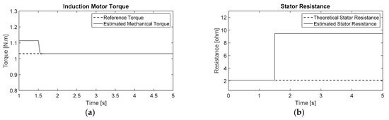 As the only parameter being estimated is the stator resistance and it is estimated by forcing the air-gap torque to be equal the shaft torque, it includes the mechanical losses effect (as these losses are the only “difference” between the air-gap torque and the shaft torque). Because of this characteristic, this resistance is to be used in the air-gap torque equation to provide an estimation for the shaft torque. Thus, in a given application, firstly the modified stator resistance is estimated by using (21) and (22), and only after that, the shaft torque is estimated by using (7) with the modified stator resistance.