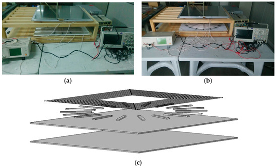 Figure 6. (a) Experimental mock-up of circular coils; (b) Experimental mock-up of square coils; (c) Basic structure of a pad.