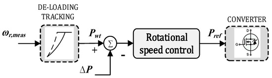where t < is the lasting time of the fast power reserve from the beginning of the frequency disturbance, is the initial rotational speed and is the rotor rotational speed corresponding to t. Figure 6 shows the fast power reserve emulation controller scheme, where the new reference rotational speed () is given as: