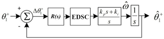 where v is the input signal of TOGI, q is the phase shift factor with 90°, is the estimate value of the grid voltage frequency, v′ and qv′ are the direct and quadrature versions of the input signal v, respectively, k1 and k2 are dynamic coefficients. It can be observed that Rc(s) has a zero at s = 0, so the DC offset can be completely rejected. However, the output of v′ does not contain the DC offset component. From the structure Figure 2a, v′ eliminates the DC component by inverse feedback to the input signal. As shown in Figure 2a, since Qc(s) is a low-pass filter, once the input signal v contains any DC component, the output signal qv′ will be affected by DC offset, which causes the amplitude detection error of the input voltage signal and affects the following phase angle lock.