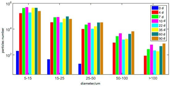 3.1. Size Distribution of Fiber Particles at Different Aging Degrees