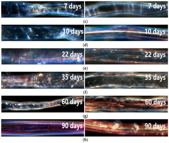 3.2. Morphology of Fibers at Different Aging Degrees