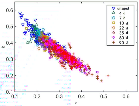3.3. Dispersion Images of Fibers with Different Aging Degrees