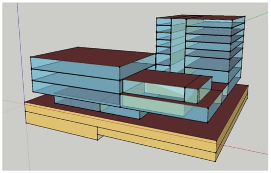 TRNSYS is a program suitable for detailed analysis of the systems that change over time. When the TRNSYS program is used, the user performs the simulation by connecting the components to each other. Components are being developed around the world and can be added after coding using the FORTRAN language. In this respect, TRNSYS has an advantage in that it is convenient when the user selects the system. The modeling of the target building was conducted using the Google Sketch Up program, as shown in Figure 8.