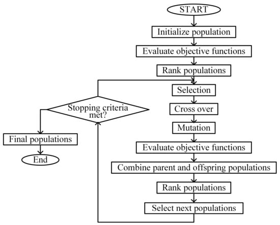 With the NSGAII algorithm, the whole computation process that is shown in Figure 5 could be summarized as follows.