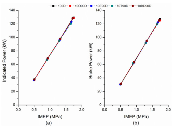 Power variation of tested fuel blends: (a) Indicated (b) Brake.