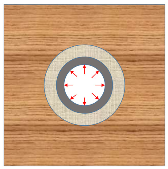 According to the elastic theory, the inner radius can be changed as follows:
