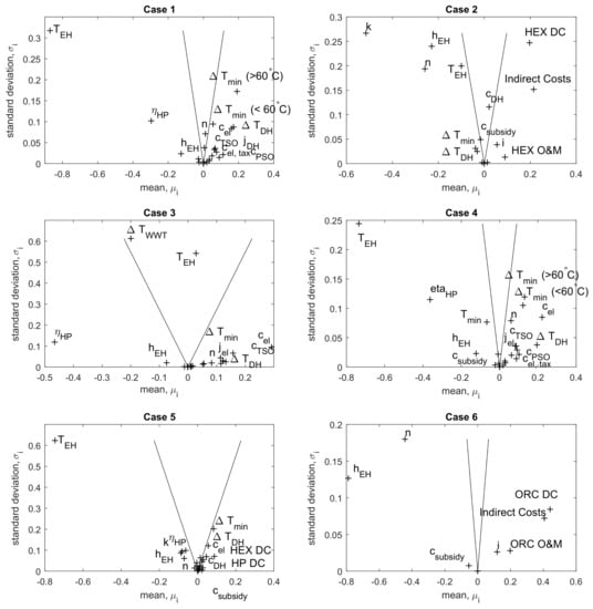 The main private-economic results and their uncertainties are summarized in Table 7 for each of the case studies. The table also includes the uncertainty of each value. All case studies, except Case 3, were profitable over the assumed 20-year life time. Case 1 and Case 4 had however a low IRR, only slightly above the discount rate. Taking into account the uncertainties, these two cases could also be unprofitable, as the standard deviation exceeded the positive NPV. Case 3 presented the highest investment costs, because a heat pump was required for a large low-temperature EH source.
