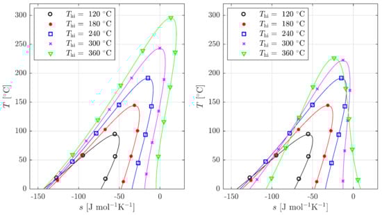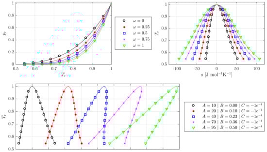 where A, B and C are constants. The enthalpy h in J/mol and the entropy s in J/(mol K) can be calculated from Equations (1) and (6). Further details of these calculations can be found in Ref. [36].