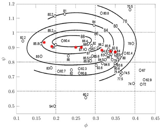 ensures zero exit swirl for a specified blade-loading coefficient. Doing this means the design of the rotor is a function of four variables, namely , , and .