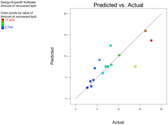 Box-Behnken Design as applied in this study is design from values: −1, 0 and +1, as indicated in Table 1. It is formed by a combination of two different stages with unfinished block scheme, it generates designs with required arithmetical steps, by a fraction of the experimental requirements for three-level factorial [34]. Base on three level factorials, the quadratic model is suitable, while blocking selection is presented for all of the schemes that are used [73]. This shows that Response surface methodology as defined above is used for explicating and estimating all experimental process parameters (level. This aim is to perform optimization criteria for both single and numerous responses , in this research work, the output response (single response) is the percentage of lipid recovered, as specifically indicated in Equation (3).