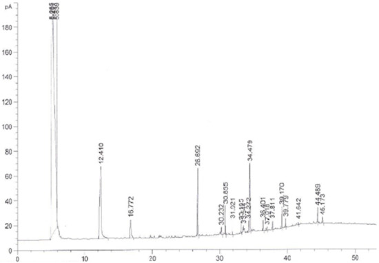 The lipid extract was examined by gas chromatography (AGILENT GC 78ZOA), with a Flame Ionization Detector (FID), an automatic sample injector, gas chromatography injectors and detectors, and capillary column of diameter 0.2–0.7 mm, 100 m long, flow rate of 0.5–15 mL/min, head pressure of 3–40 psi, capacity of 100 mg/pack, film thickness of 0.1–8 μm. The packed column has a length of 0.5–5 m, a diameter of 2–4 mm, flow rate 10–60 mL/min, the head pressure of 10–40 psi, a capacity of 10 μg/pack, and the film thickness of 1–10 μm. Helium, hydrogen, and nitrogen are being used as a carrier gas, while diethyl ether serves as a solvent during the analysis. During GC analysis, 37 components certified standard of FAME’s was used to confirm the presence of the individual FAME and to accurately calculate the concentration of the components found. A second sample was used, which was a standard 80:20 mixture of biodiesel and diesel from a soya source. Each sample was injected at a volume of 1 µL and the resulting chromatograms were used to identify each of the FAME’s by their retention times using the standard. Once identified, the concentrations were calculated by using the peak area. This allowed for the concentrations to be calculated in µg/ml (ppb) and as a percentage of the total peak area.