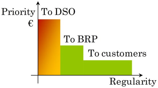 Figure 2 compares regularity, flexibility services and grid status priority. In red and amber states, the aggregator offers its available flexibility to the DSO to solve or avoid problems in the grid, which should only occur on a few specific occasions. These services have higher priority than other flexibility requests, and consequently, these are supposed to be highly rewarded. The DSO is responsible for the identification of the grid state and necessities to inform aggregators about them. Controlled islanding service at prosumer premises can also be performed in the red state.