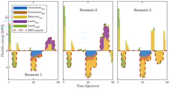 Depending on the flexibility regulation direction, simultaneous external requests can be complementary or contradictory. In the case of allowing multiple flexibility services, the aggregator has to follow a certain criterion. The criterion applied in the case study shown below follows the TLC explained before. Therefore, the DSO requests always have higher priority than others in the case of opposite requests.