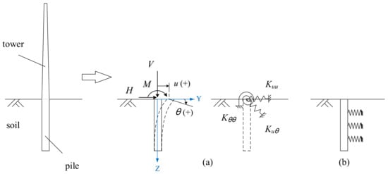 - Arany, L.; Bhattacharya, S.; Adhikari, S.; Hogan, S.J.; Macdonald, J.H.G. An analytical model to predict the natural frequency of offshore wind turbines on three-spring flexible foundations using two different beam models. Soil Dyn. Earthq. Eng. 2015, 74, 40–45. [Google Scholar]