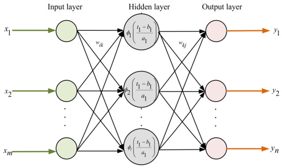 - Step 8: Calculate the output vector. Input the sample, obtain the output of the hidden neuron through the following Equation (8).where is the Morlet wavelet function, . For the sample, calculate the output of the neuron in the output layer through the following way:where is the threshold value of the neuron in the output layer.