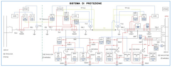 To guarantee the correct operation of the 220 kV connection cable, the automatic fast and slow reclosing located in the Ragusa SE, SSE Ragusa and SE Maghtab must be excluded. Furthermore, the closing of the line switches (52 L) is controlled by a parallel device that controls the voltage difference parameters (ΔV%) and angle difference (ΔΦ).