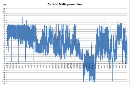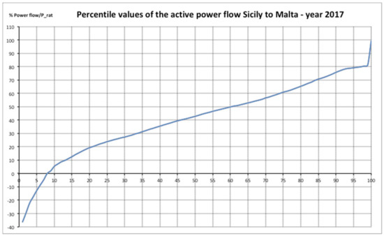 Figure 6 the percentile values of the active power exchanged with the Maltese electricity system, both figures refer to the period January 2017–January 2018.