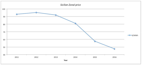 Figure 7 shows the trend of the zonal price of electricity in Sicily, while
