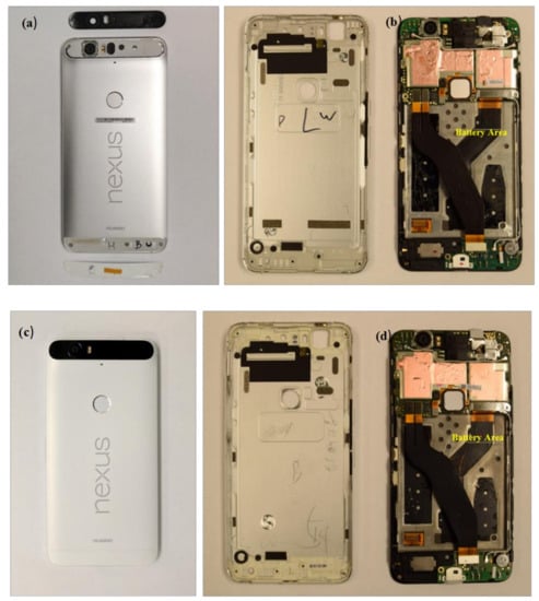 - Lionheart, S.; Noronha, E.; Suovanen, J.; Kelsea, B.; McCrigler, A.O.; Goldberg, R.; Davis, G.; Wacker, W.; Galan, J. Nexus 6P Teardown, iFixit.com, 28 October 2015. Available online: https://www.ifixit.com/Teardown/Nexus+6P+Teardown/51660 (accessed on 12 July 2017).