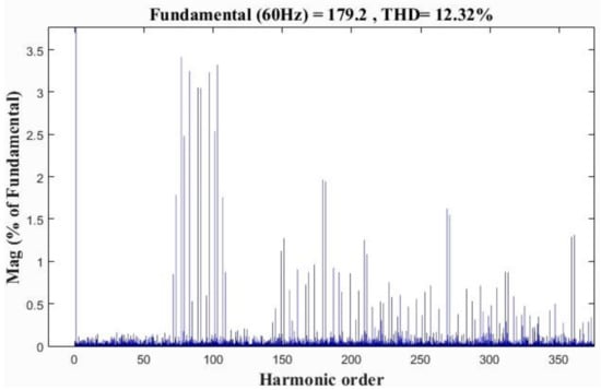 THD spectrum of output voltage (Vab) of THI-PWM.
