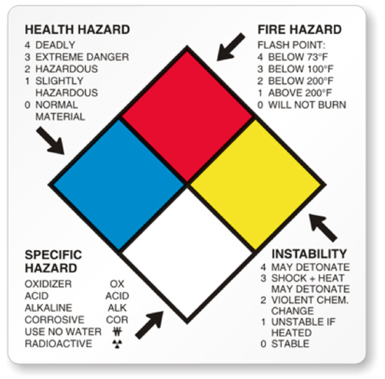 National Fire Protection Association (NFPA) 704 diamond standard [29].