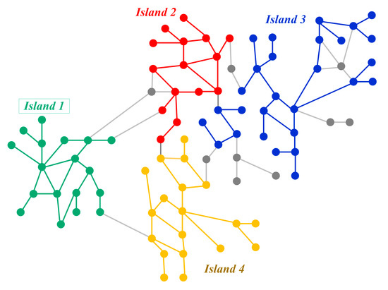 Similarly, a new Jacobian matrix according to the new system configuration is calculated. The dimensions of the new Jacobian matrix are (2nv × 2nv × 2ns). Equations (4)–(8) represents the mth layer of the Jacobian matrix calculated for the mth island in the system: