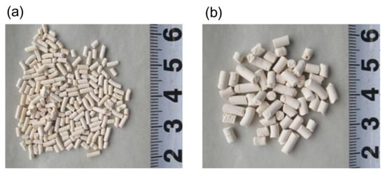 Appearance of Zeolite 13X adsorbent pellets ((a) d = 1.5 mm; (b) d = 3.0 mm.).
