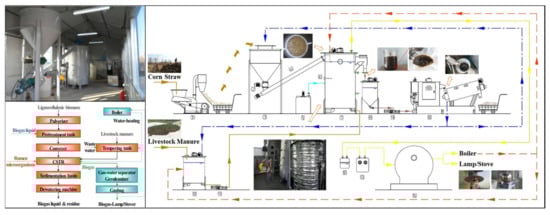 Agricultural solid organic wastes (ASOWs), which are produced as a result of agricultural activities performed by human beings, have been confirmed as one of the main factors influencing the sustainable development of China. Among ASOWs, lignocellulosic biomass and livestock manure have been given wider attention due to their large yield, resource waste, and serious environmental pollution [1]. According to statistics, an estimated 598 million tons of crop straw were produced in 2014, including 472 million tons of collectable straw [2]. The yield of livestock manure reached 2.121 billion tons in 2011, which will continue to increase rapidly to 2.875 billion tons by 2020 and 3.743 billion tons by 2030 [3]. Crop straw, accounting for 38.9% of total biomass resources, is considered an ideal candidate for clean energy production [4], whereas the annual pig manure (PM) accumulation of 1.036 million tons caused 2.5 times the emissions as open straw burning in China due to improper treatment [5].